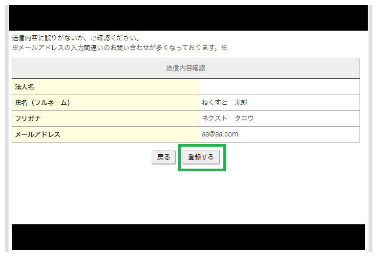 確認画面が表示されますので、入力内容に間違いがないことを確認し