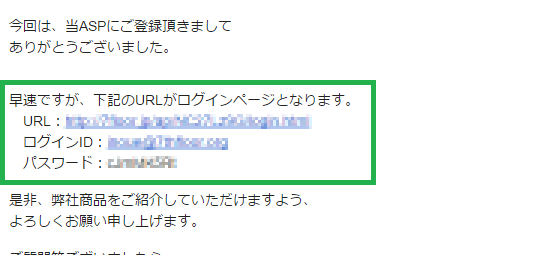 登録完了後、登録メールアドレス宛にログイン情報が届きますので